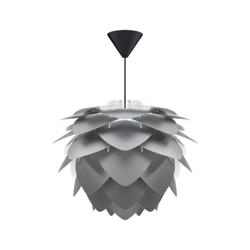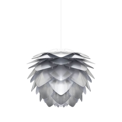 Silvia medium skal kombineres med et ophæng, som købes særskilt. Vælg eksempelvis mellem E27-ophængene Cannonball, Cannonball Cluster 2 og 3, Cord Set, Cord Set Pro eller Rosette fra Umage. Vægophængene Willow, gulv- eller bordstanderne Tripod eller Santé vægbase samt Santé gulv- eller bordstanderne fra Umage passer også godt til Silvia.