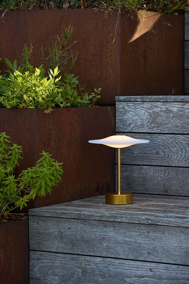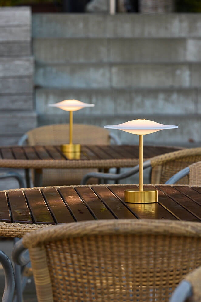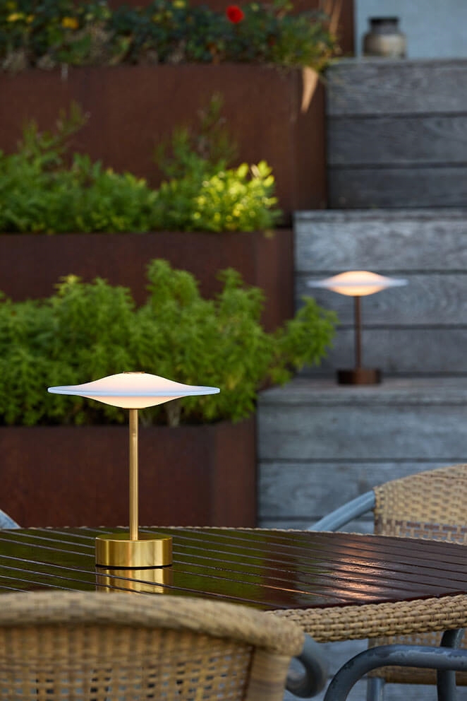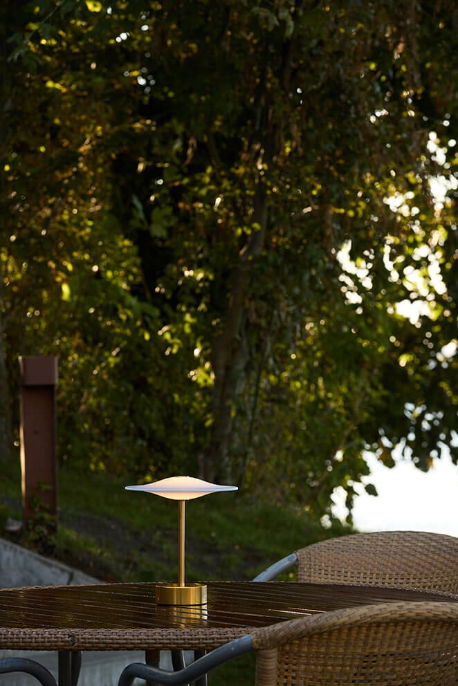 Den transportable bordlampe Sinus Portable kan benyttes både indendørs og udendørs og er perfekt til middagsbordet, hyggelige stunder i stuen eller sommeraftener på terrassen. Den er dæmpbar i tre trin via en touch-funktion på toppen og leverer et blødt og behageligt blændfrit lys. På fuld styrke lyser batterilampen op til 10 timer og med lysstyrken på 40% op til 24 timer og på 10% i op til 86 timer.