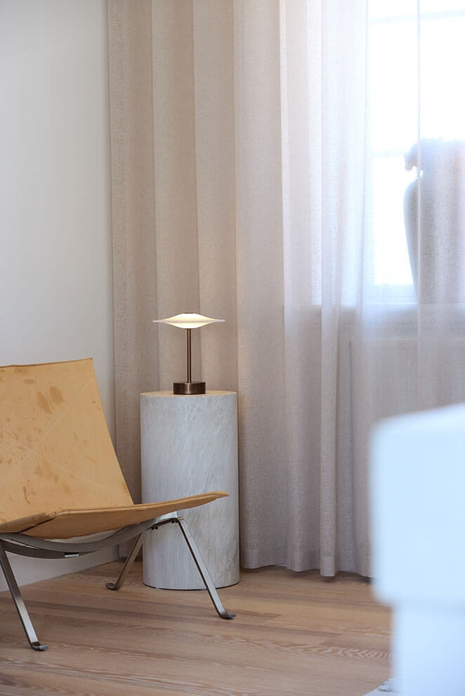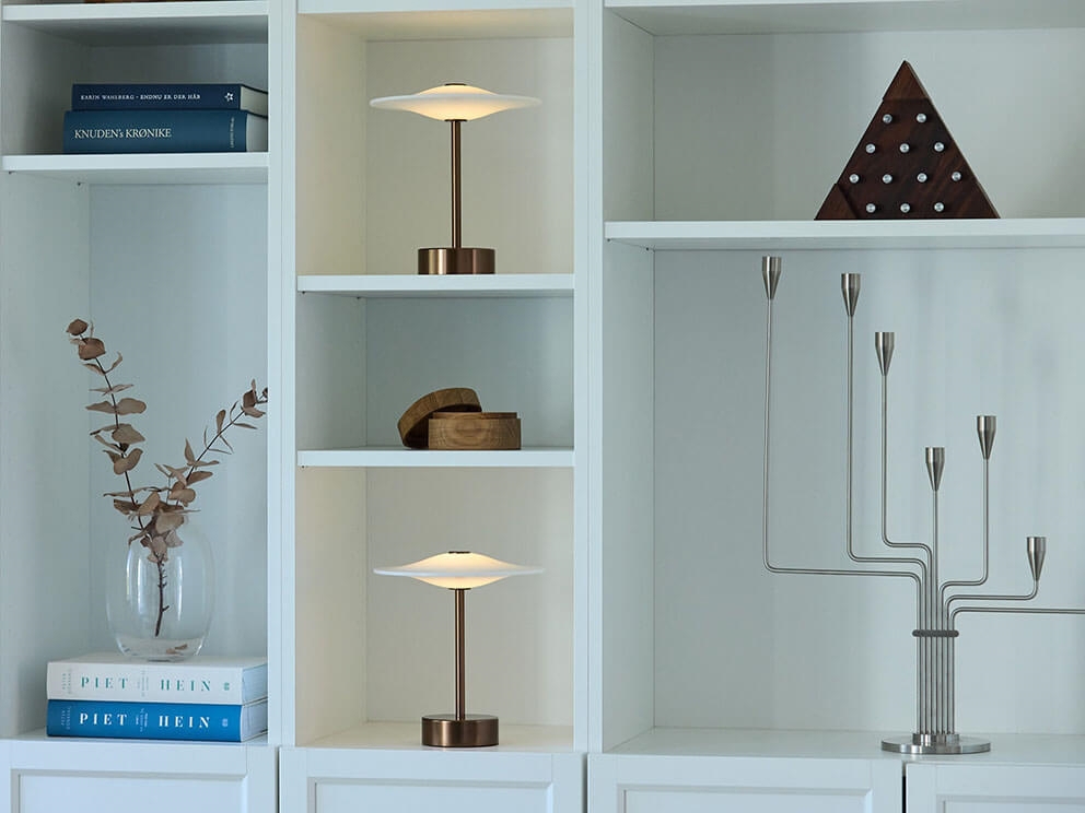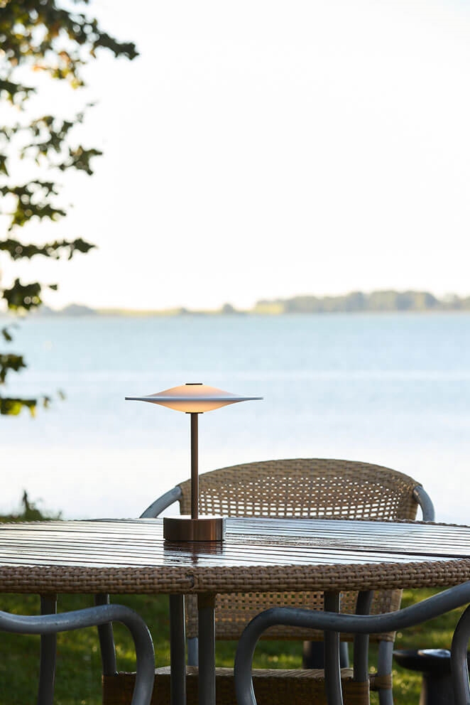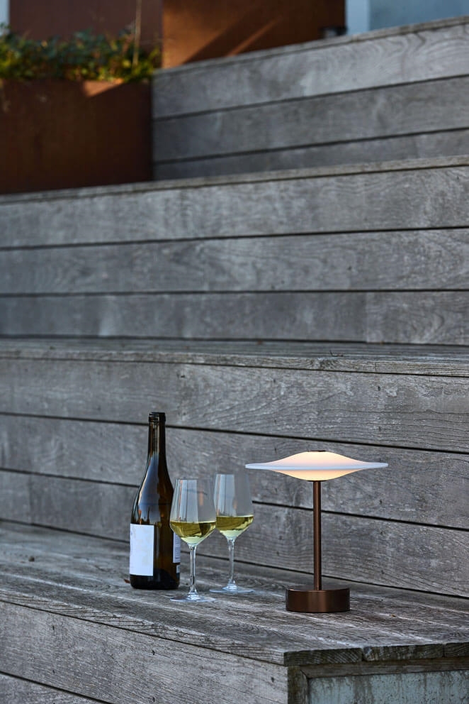 Den transportable bordlampe Sinus Portable kan benyttes både indendørs og udendørs og er perfekt til middagsbordet, hyggelige stunder i stuen eller sommeraftener på terrassen. Den er dæmpbar i tre trin via en touch-funktion på toppen og leverer et blødt og behageligt blændfrit lys. På fuld styrke lyser batterilampen op til 10 timer og med lysstyrken på 40% op til 24 timer og på 10% i op til 86 timer.