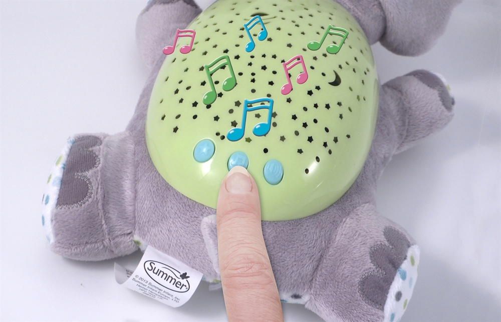 Elefanten har også en pulserende vibration, som efterligner forældres hjerteslag, der giver barnet en trykhed og får dem til at slappe af. Her kan lampen afspille 8 meditiative sange og naturlyde på 3 forskellige lydstyrkeniveauer.