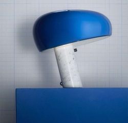 Flos Snoopy bordlampe designet af Achille & Pier Giacomo Castiglioni for Flos i flot navy blå.