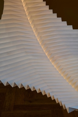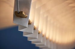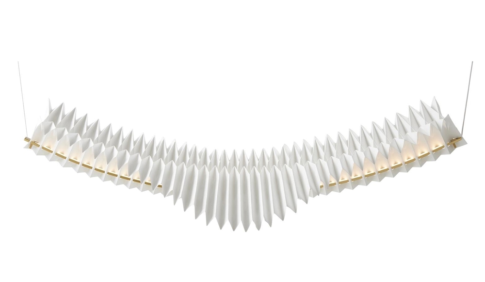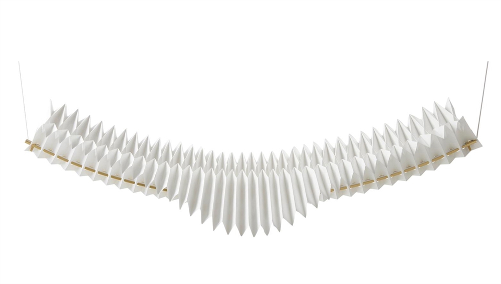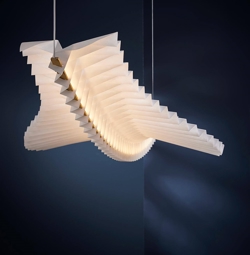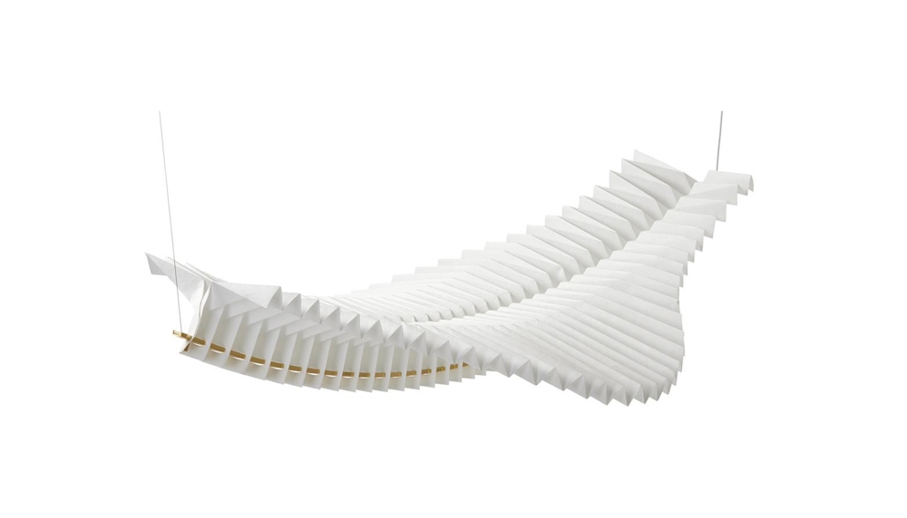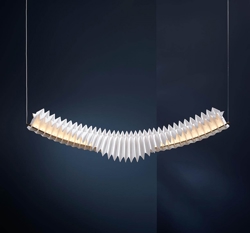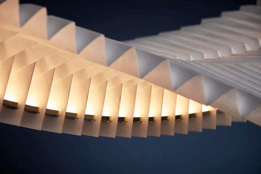 Den håndlavede skulpturelle pendel Sora er konstrueret ved hjælp af traditionelle japanske origamiteknikker. Den papirlignende konstruktion i det syntetiske materiale tyvek og massiv messing har en integreret LED-lyskilde, der giver pendlen et diffust lys.