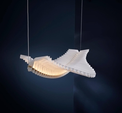 Bag designet står den britiske designduo Fung+Bedford, der arbejder dedikeret med kunsten at folde origami. Soras unikke svævende form vil passe godt som pendel over spisebordet, belysning i en entré med højt til loftet eller som iøjnefaldende designelement i et kontormiljø.