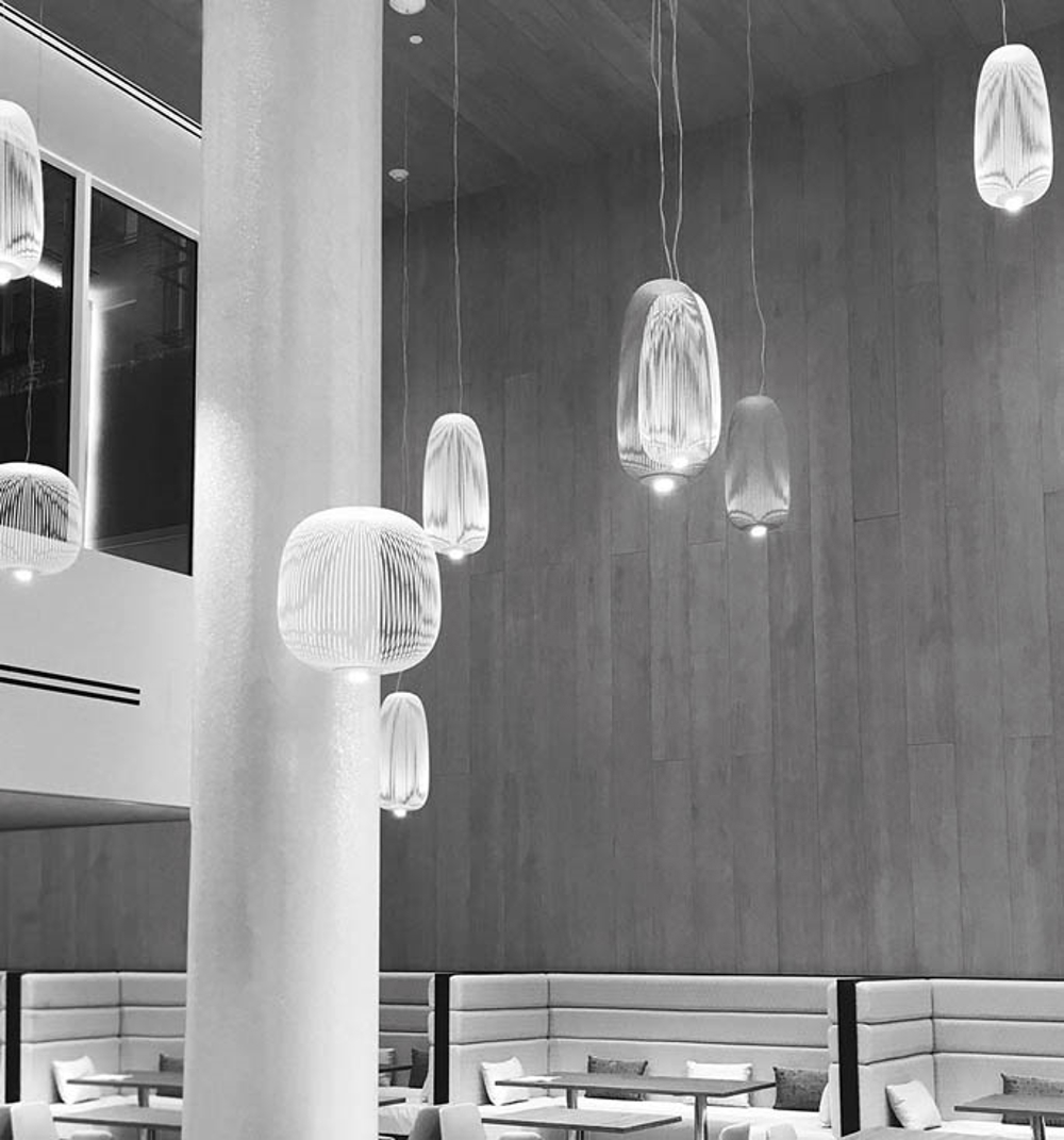 Foscarini har med Spokes fra 2015 fået inspiration fra antikke orientalske lanterner og skabt en meget visuel og funktionel lampe. Resultatet af dette er bløde former og en let lampe, hvor lyset spiller smukt ud i rummet.