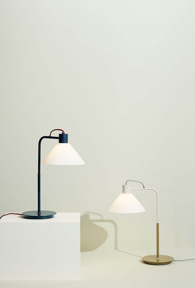 Bordlampen Spot kombinerer klassisk funktionalitet med et moderne udtryk og vil med sit elegant design løfte enhver indretning. Lampen har en harmonisk og levende udstråling med base i khakifarve og en hvid glasskærm. Designet tilfører varme og atmosfære til rummet, uanset om lampen placeres på et skrivebord, en reol eller på en hylde.