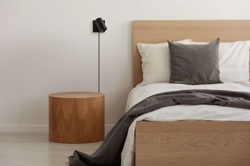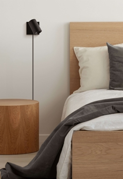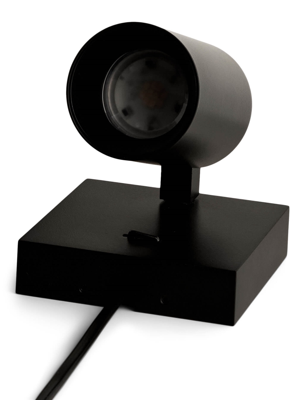 SpotOn1 Wall findes i hvid og i sort og i en variant med rund base. Lampen er designet til montering direkte på væggen og er udstyret med et kabelhul, som gør det let at trække en ledning.