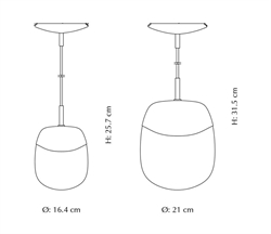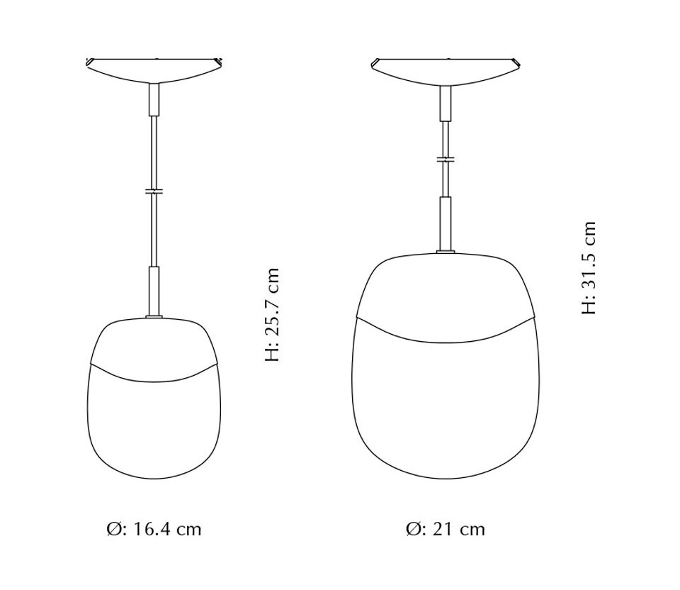 Pendlen fås i to størrelser. Der er også en bordlampe i serien.