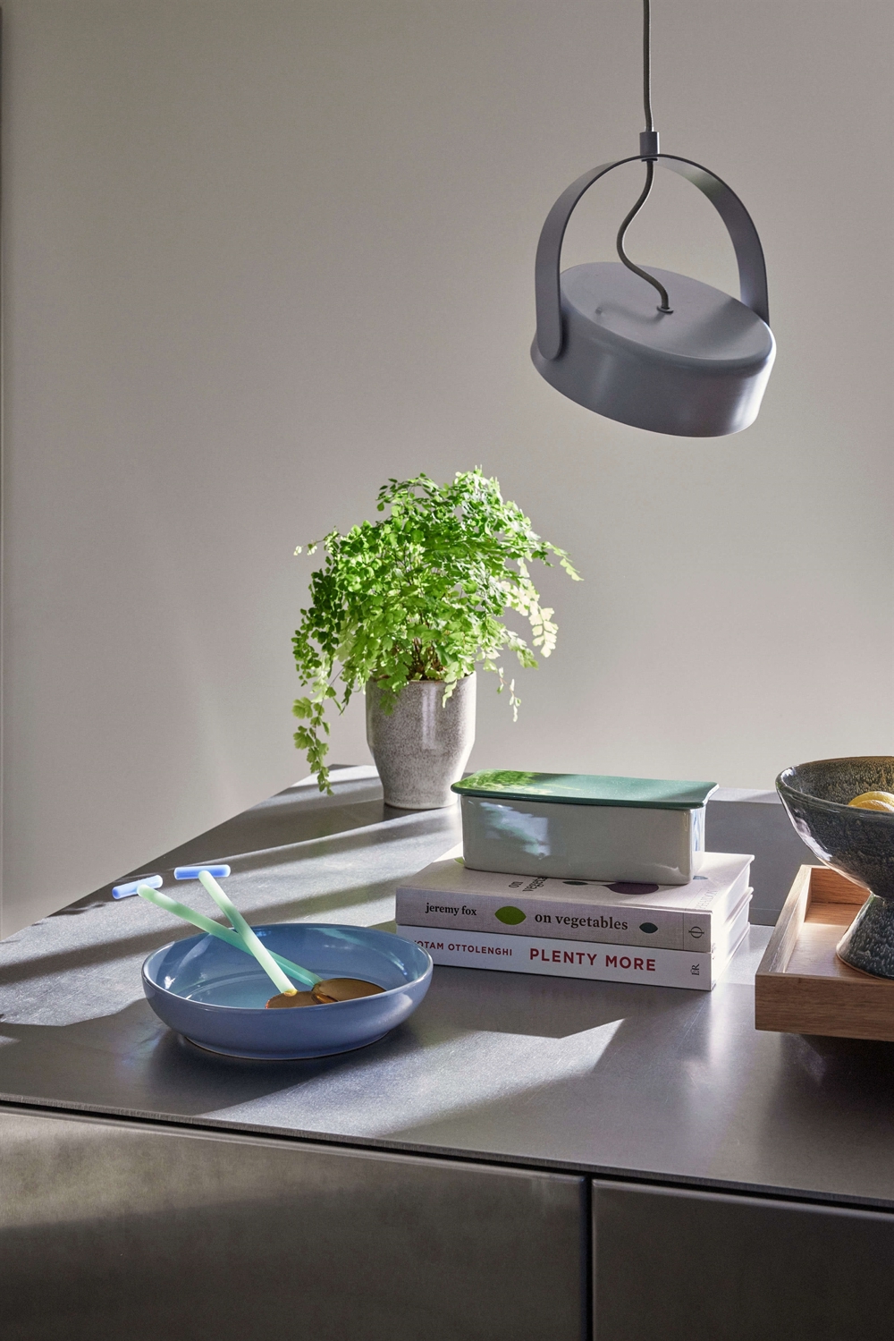 Pendlen Stage har et stilfuldt og tidløst design, der med sit raffinerede minimalistiske udtryk vil løfte enhver indretning. Det let genkendelige, men enkle udtryk med en kompakt lysegrå jernkonstruktion gør pendlen til et blikfang uanset om den hænger alene eller flere sammen over spisebordet eller køkkenbordet.