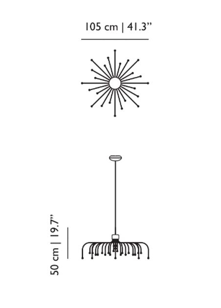 Pendlen anvender 30 LED lyskilder og har udtryk som en omvendte lysekron, der bringer et evigt stjernefald i dit hjem. Designet er elegant med 30 slanke arme af forskellig længde, der alle er med til at symbolisere faldende stjerner - eller en helt stjerneklar nattehimmel med prikker af lys i varierende højder.