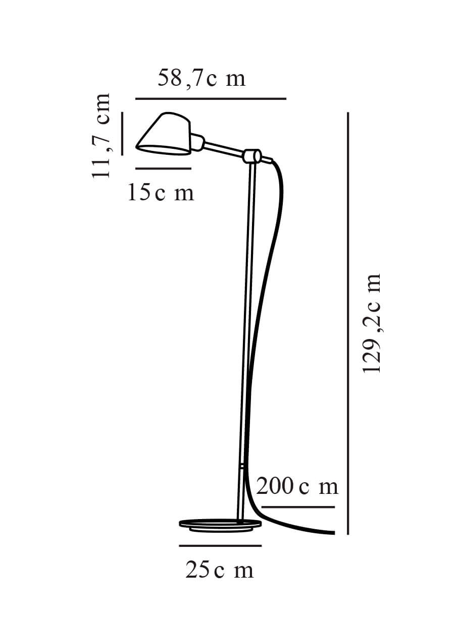 Mål: H129,2 x L58,7 cm, skærm: Ø15 x H11,7 cm, base: Ø25 cm