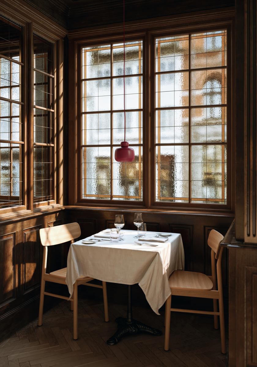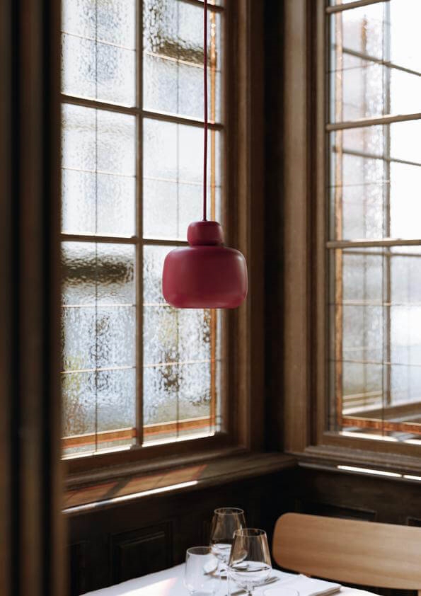 Pendlen Stone i rød har et blidt ydre med runde former, som giver et roligt udtryk til ethvert rum. Lampen er inspireret af sten på stranden som gennem tiden får skabt et blødt og organisk ydre af vand, vind og vejr.