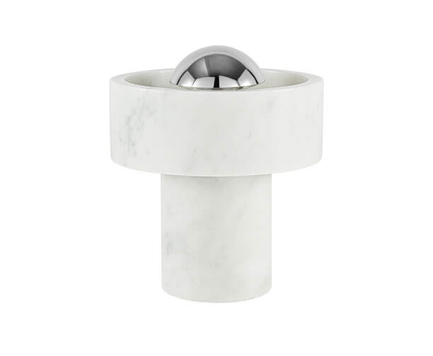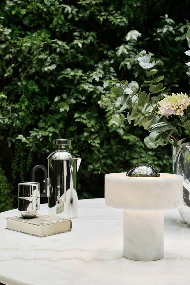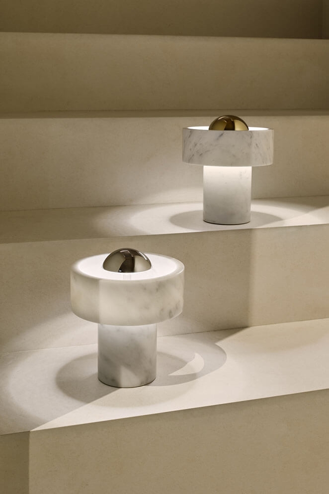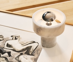 Batterilampen Stone Portable er en genopladelig lampe med en base i marmor, der som materiale har fascineret formgivere i årtusinder. Lampens kendetegn er en solid ydre marmorring, der ser ud til at svæve omkring lyskilden og skaber en glorieeffekt.
