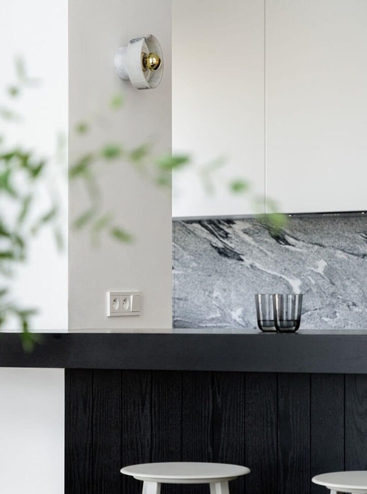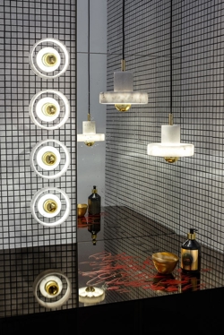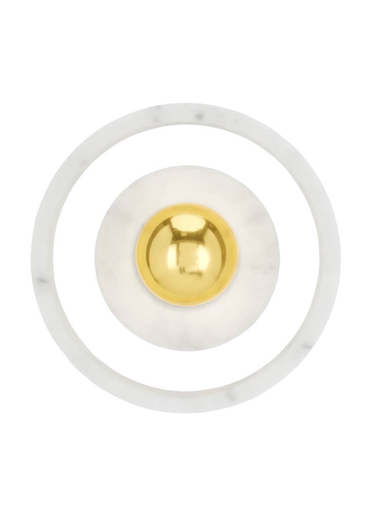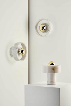 Væglampen Stone er en langtidsholdbar lampe med en base i marmor, der som materiale har fascineret formgivere i årtusinder. Lampens kendetegn er en solid ydre marmorring, der ser ud til at svæve omkring lyskilden og skaber en glorieeffekt. Designet i marmor med en detalje i guld vil passe godt ind i mange moderne indretninger, og lampen kan eksempelvis placeres alene eller flere sammen i køkkenet, i et gangareal eller i entréen eventuelt i samspil med andre elementer i marmor.