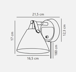 Væglampen kommer med to remme i læder i høj kvalitet – en sort og en naturfarvet – så du selv kan tilpasse lampen efter dit ønske. Den kan vippes 90° og drejes 350°.