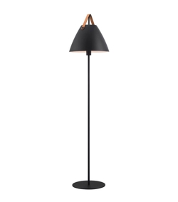 Gulvlampen Strap kombinerer metal og læder i en moderne nordisk stil. Strap-serien har fået navn efter de iøjnefaldende remme, der tilføjer varme og noget råt til lampen. Designet balancerer mellem et klassisk og et industrielt udtryk.