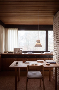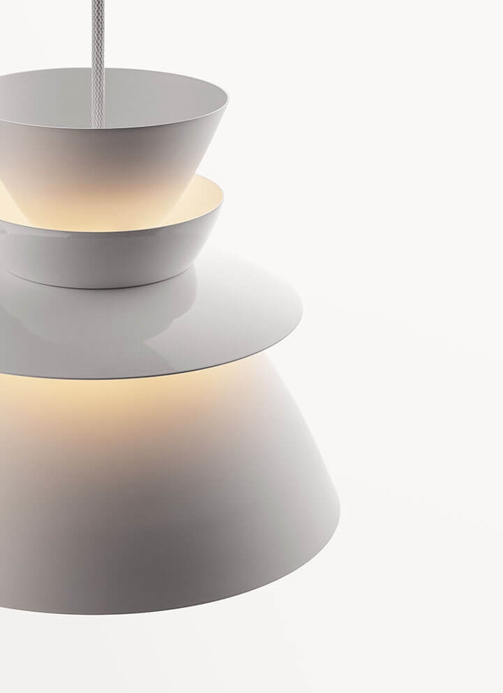 Den ikoniske pendel Sundowner designet af Jørn Utzon i 1948 skaber behagelig og stemningsfyldt belysning, når solen går ned. Når pendlen er tændt leder den horisontale midterlinje tankerne hen på solens sidste stråler.
