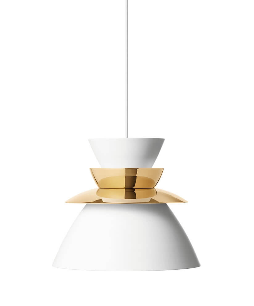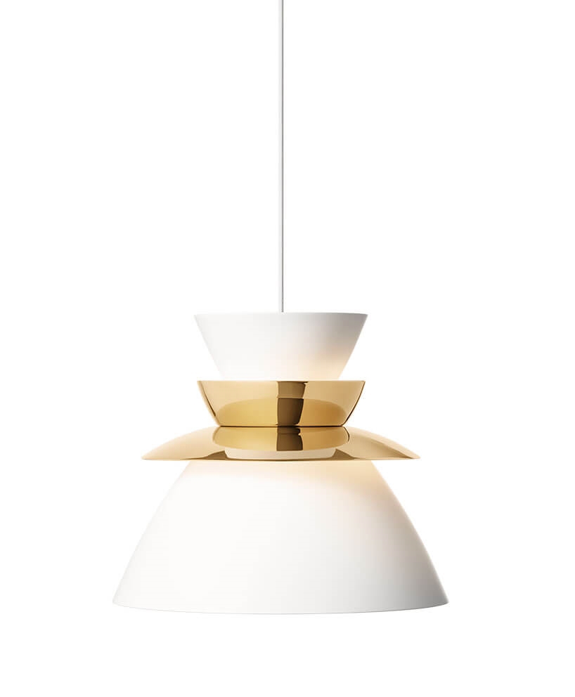 Lyfa Sundowner pendel 400, messing/mat hvid - designet af Jørn Utzon