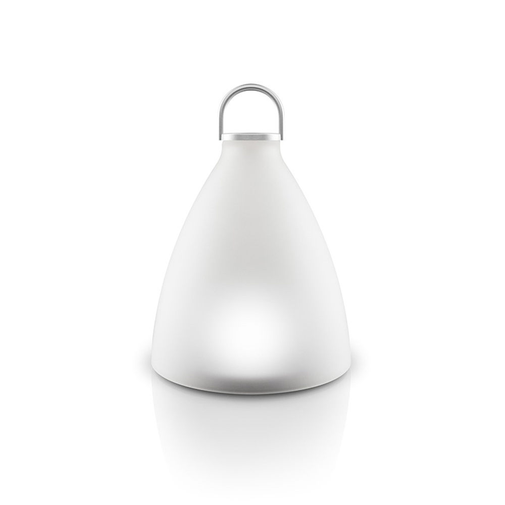 Denne Eva Solo Solcellelampe er 100% soldrevet og med skjulte solpaneler. SunLight Bell har et unikt og enkelt design, der både kan placeres på havebordet eller hænges op i ringen på toppen af lampen.