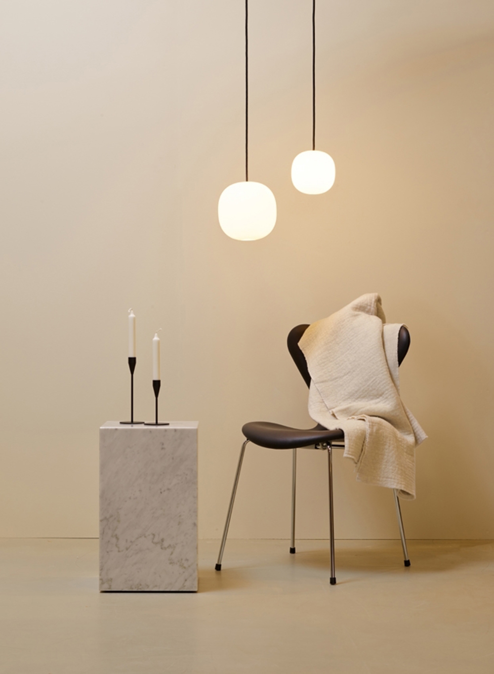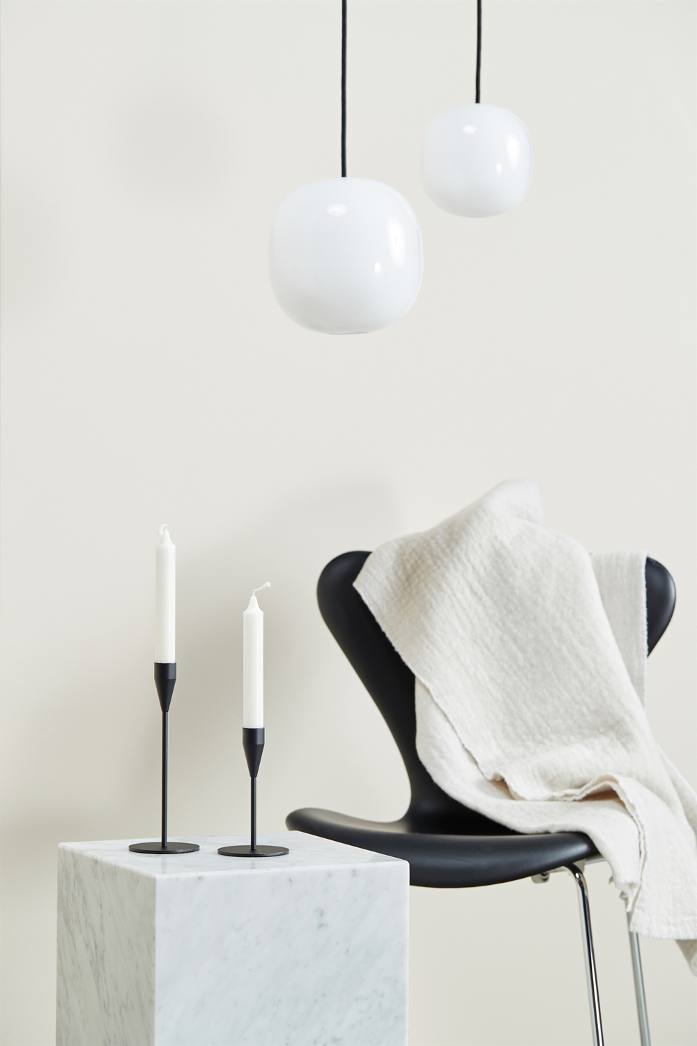 Superkube findes i to størrelser med enten hvid eller sort ledning - og er en utrolig anvendelig Piet Hein pendel.