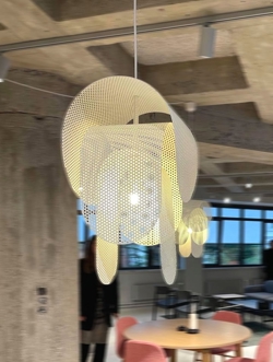 Den unikke Superpose pendel består af 3 bøjede og perforerede stålplader, der hver er forskudt med en 180 grader vinkel. Det giver lampen en fantastisk organisk effekt, som er med til at gøre Superpose skulpturel at kigge på.