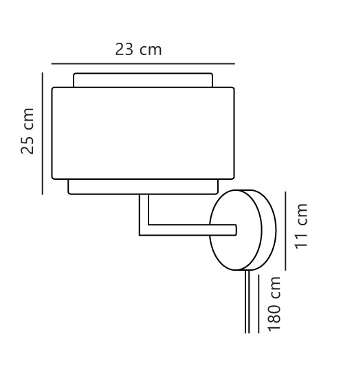 Mål: Skærm: Ø23 cm x H25 cm, base Ø11 cm