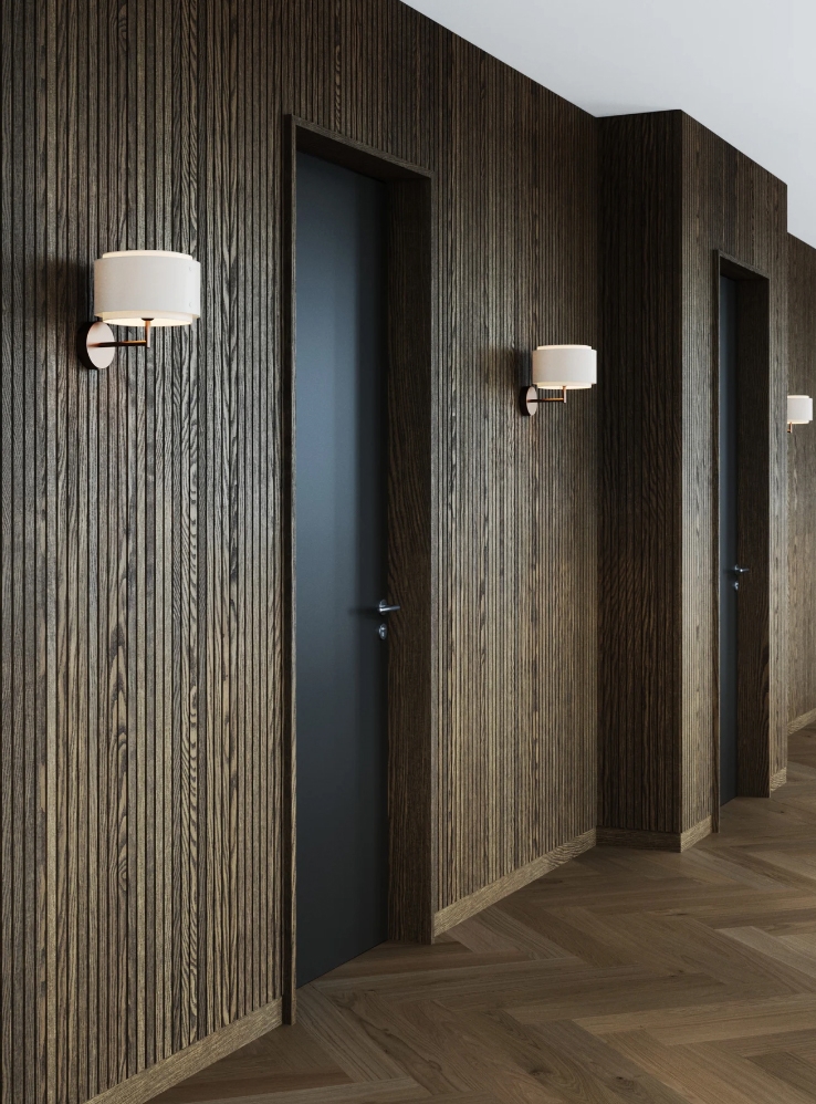 Væglampen kan med fordel kombineres med andre lamper i Takai-serien for at skabe en helhed i indretningen.