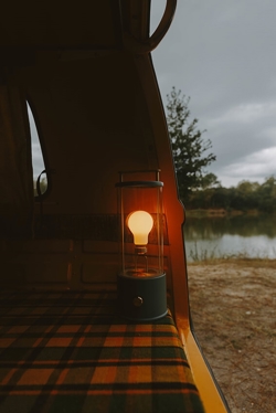 The Muse er en portable bordlampe, der let kan tages med overalt. Den blander klassisk lygte-æstetik med supermoderne teknologi.