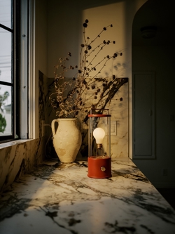 The Muse er en portable bordlampe, der let kan tages med overalt. Den blander klassisk lygte-æstetik med supermoderne teknologi.