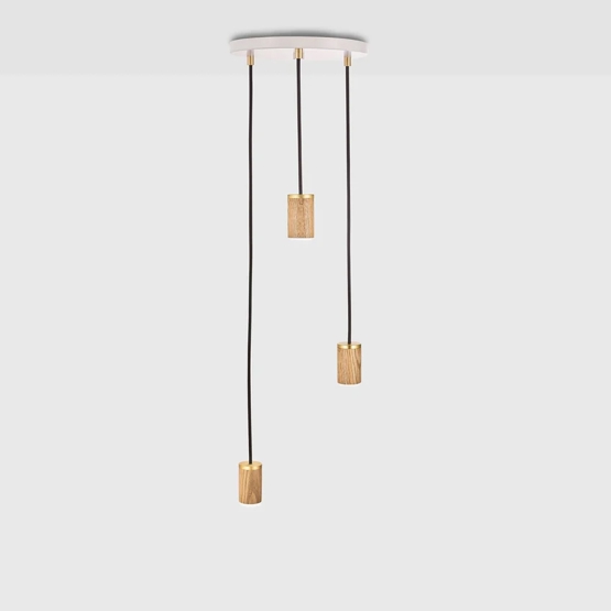 Tale Triple pendel fås med en hvid eller sort loftsbaldakin, med tilhørende greb i enten sort, messing, grafit og oak.