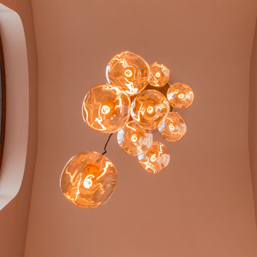 Glasset er mundblæst og håndlavet samt har et iron-tinted glas finish.