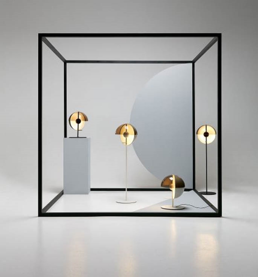 Gulvlampens skærm består af to halve kugler, én vandret og én vertikalt. Skærmene kan drejes således at lyset tilpasses behovet. F.eks. kan den bruges som læselampe ved hjælp af det direkte lys eller bruges til at skabe en hyggelig belysning ved hjælp af det indirekte lys der opstår, hvis lampen vendes mod en væg.