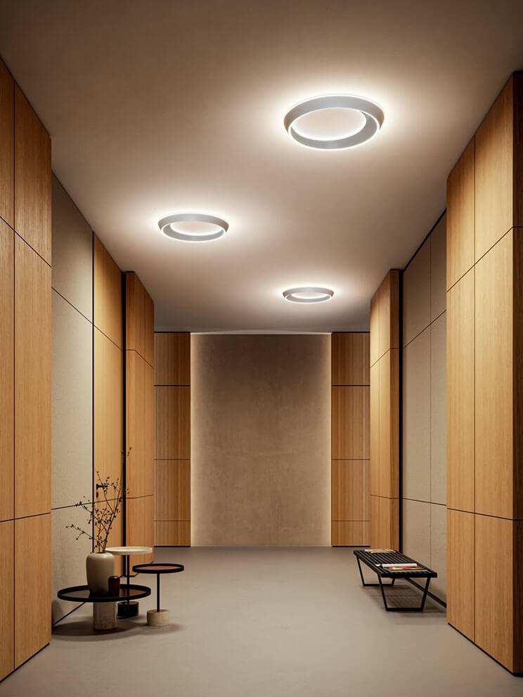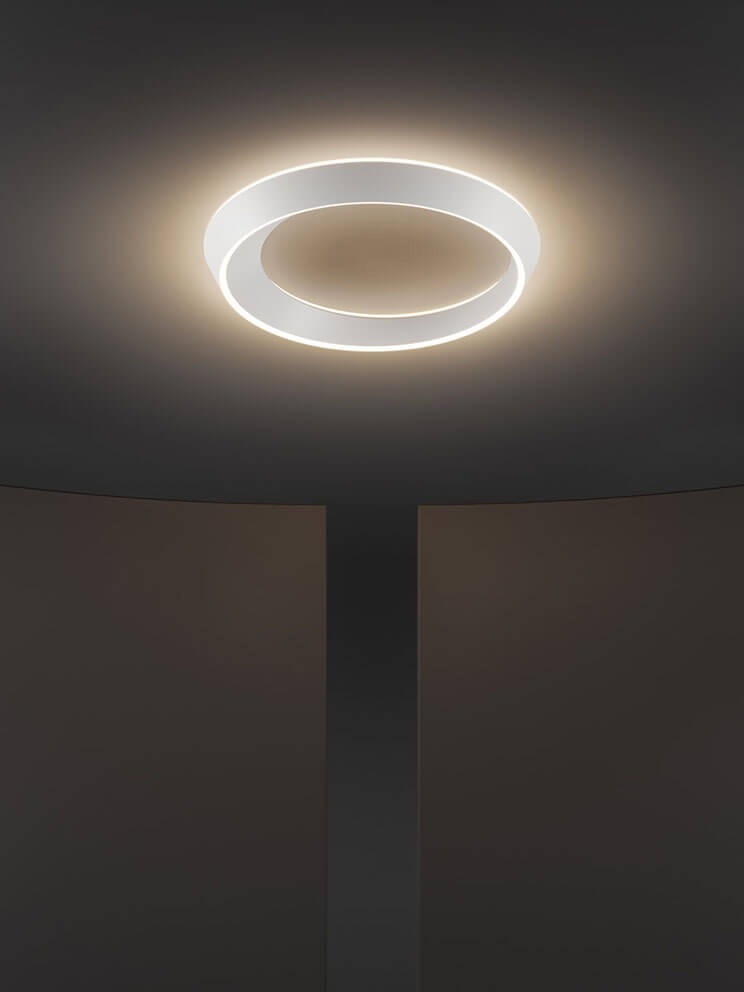 Loftlampen Tidal består af en ring med en asymmetrisk form inspireret af himmellegemers og tidevands bevægelser, så den ene side er bredere end den anden. Designet gør loftlampen til en visuel oplevelse, der fremstår forskelligt alt efter synsvinkel.