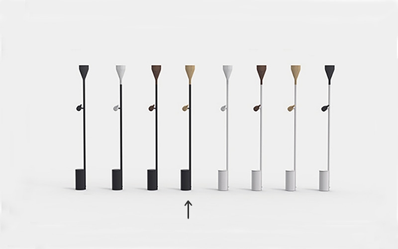 Timber Floor findes udover i sort også i hvid med spot og uplight i fire forskellige varianter: eg, valnød, hvidbejdset ask eller sortbejdset ask. Her er Timber Floor primært vist med spot og uplight i valnød.