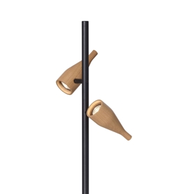 Lounge Double i Timber-serien er en gulvlampe med to bevægelige spots, der gør lampen anvendelig som eksempelvis læselampe.