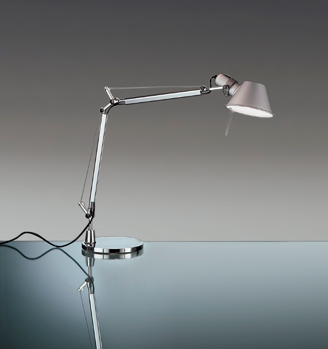 Tolomeo findes i mange størrelser og er med sin fleksibilitet et oplagt valg både som skrivebordslampe eller som læselampe ved elevationssengen.