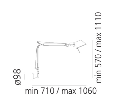 Tolomeo findes i mange størrelser og er med sin fleksibilitet et oplagt valg både som skrivebordslampe eller som læselampe ved elevationssengen.