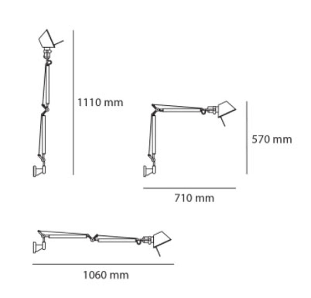 Tolomeo findes i mange størrelser og er med sin fleksibilitet et oplagt valg som både skrivebordslampe eller læselampe ved elevationsssengen.