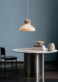 TR22 har et meget klassisk look, der med sine bløde og runde former komplementerer spisebordet smukt – både alene eller i klynger af flere pendler. Pendlen er lavet af birk, der over tid vil få en smuk patina, hvor træets struktur ændrer sig lidt. Dette fremhæver træets årer, og gør dem lidt lysere.