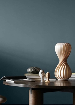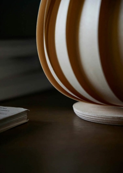 Tom Rossau bordlampen er lavet af birk, der over tid vil få en smuk patina, hvor træets struktur ændrer sig lidt. Dette fremhæver træets årer, og gør dem lidt lysere.