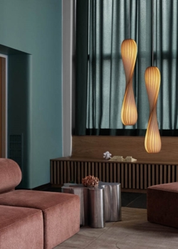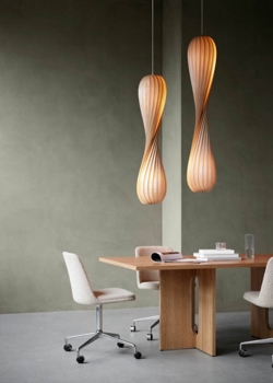 TR7 pendlen fra Tom Rossau har en smal facon, der gør den essentiel at hænge i hjørnet af stuen, og gør at pendlen nemt kan passe ind i mange afkroge af indretningen. Pendlen har et skulpturelt udseende, og derfor er den også smuk, selvom lyset ikke er tændt. Den lukkede skærm, som pendlen har, indkapsler lyskilderne, hvilket giver et indirekte lys uafhængigt af valg af materiale. TR7 findes i tre forskellige materialer heraf birk, PC Nonwoven og plastik.