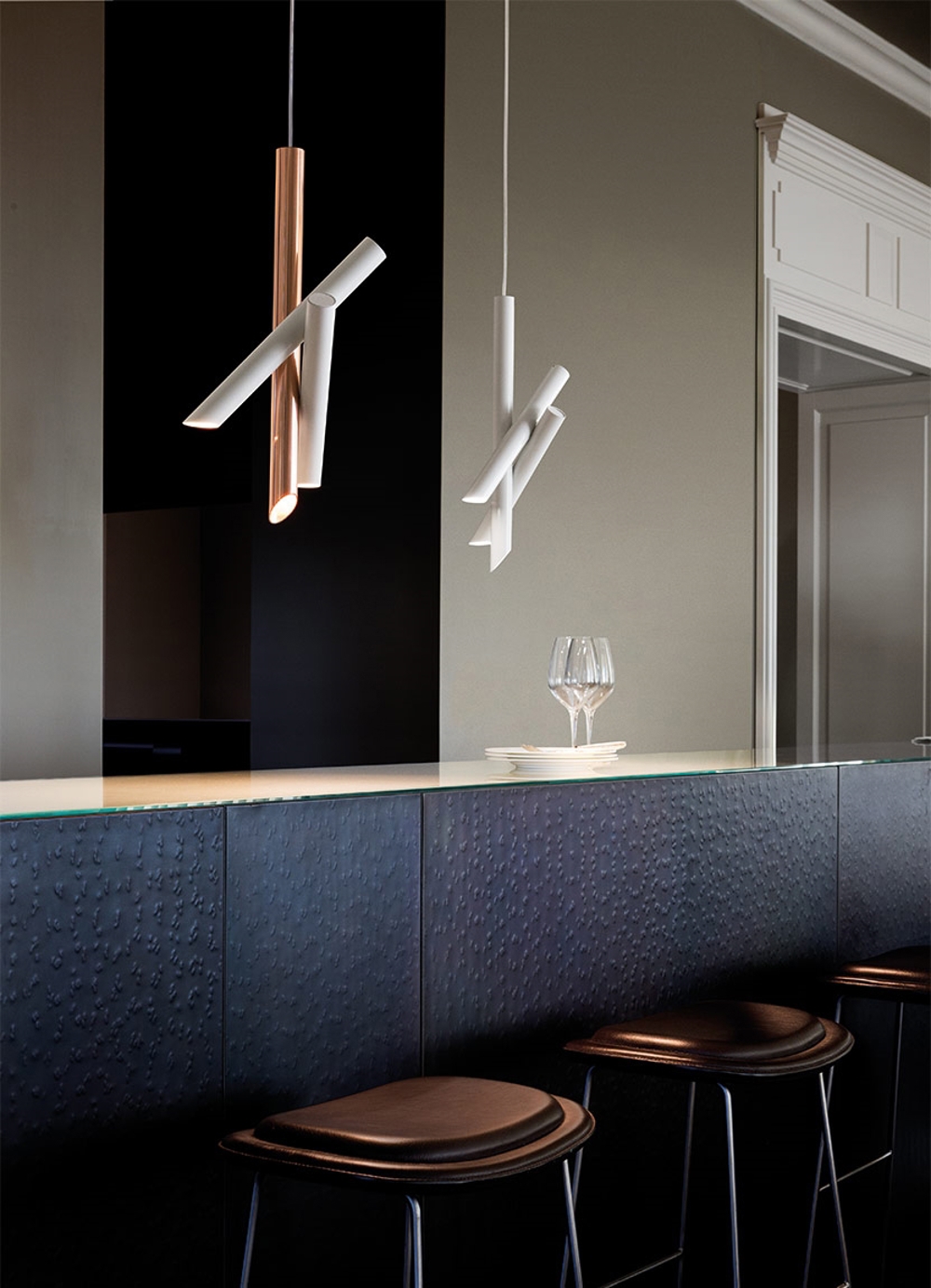 Nemo Tubes 3 pendel , hvid/kobber - designet af Charles Kalpakian.