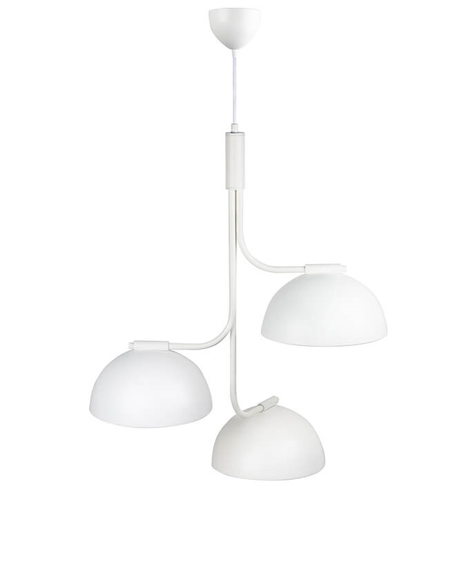 Tullio pendlen består af de tre lampeskærme, der alle har bløde og runde former. Pendlen giver derfor et skulpturelt udtryk i rummet og en god mængde lys, grundet de tre skærme. Skærmene er yderligere konstrueret med diffusorer, så lyset vender nedad og ikke blænder.