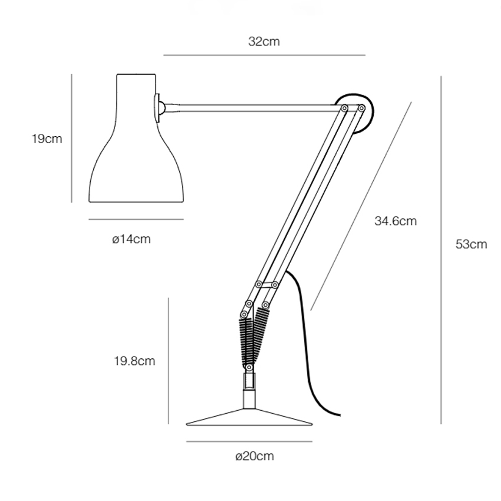 Anglepoise Type 75 bordlampen er det perfekte valg ved skrivebordet eller som læselampe ved sofaen eller lænestolen.