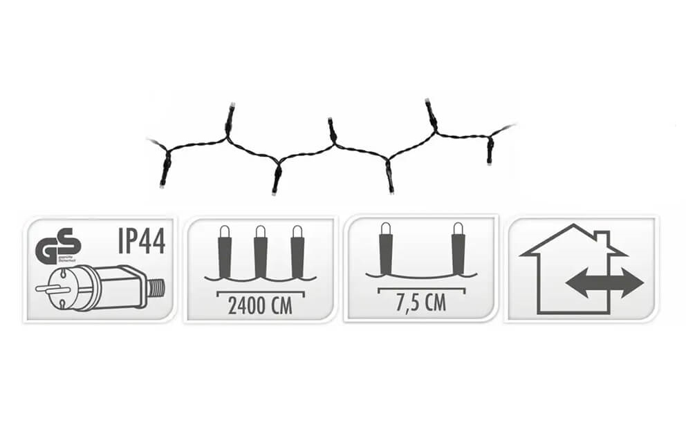 Længde: 24 m lyskæde + 3 m ledning før LED-lysene