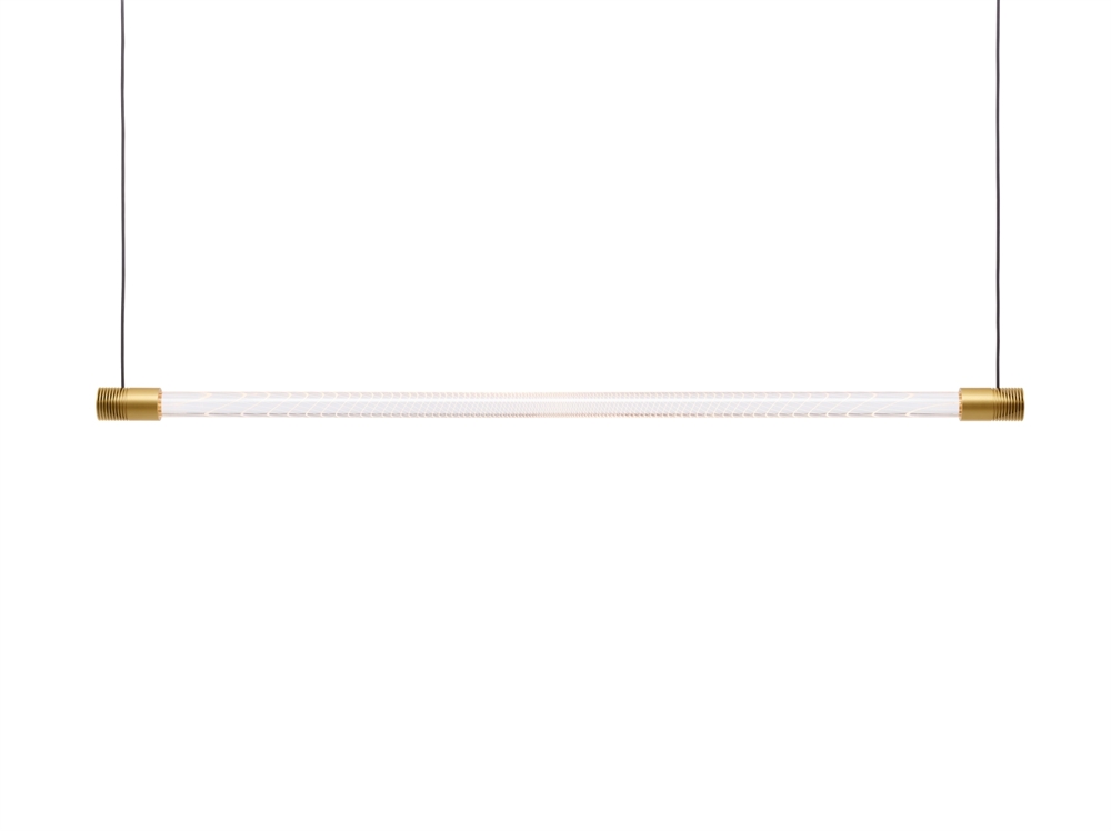 Pendlen består af et LED-rør lavet af ætset glas, der får lyset til at blive brudt flot i rummet.