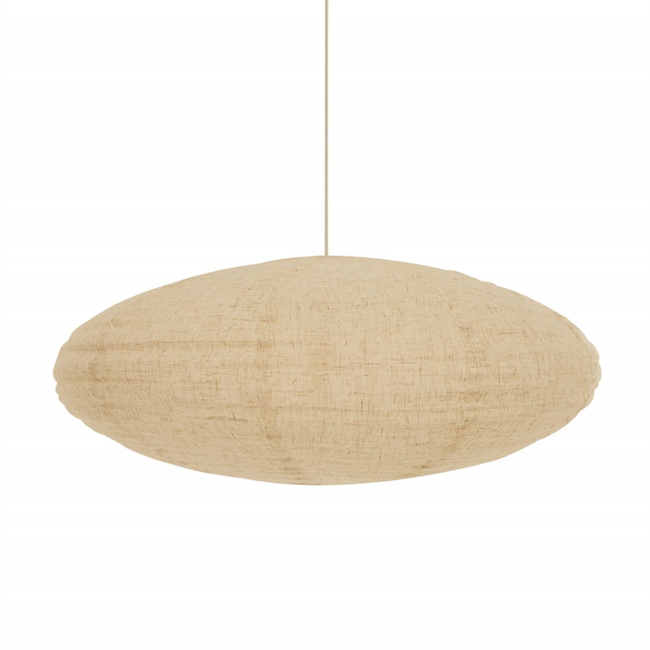 Denne variant af pendlen Villo har skærm lavet af linned og er en moderne fortolkning af den tidløse rispapirlampe. Det naturlige linnedstof giver lampen et blødere og varmere udtryk end varianterne i rispapir, men bevarer lampens lette og luftige look og det bløde og diffuse lys, der skaber en hyggelig stemning.