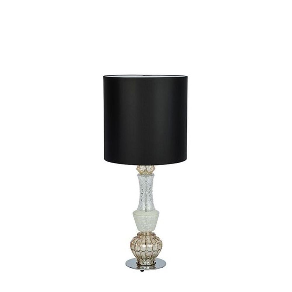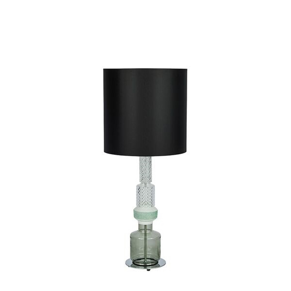 Lampen leveres med en håndlavet sort stofskærm.