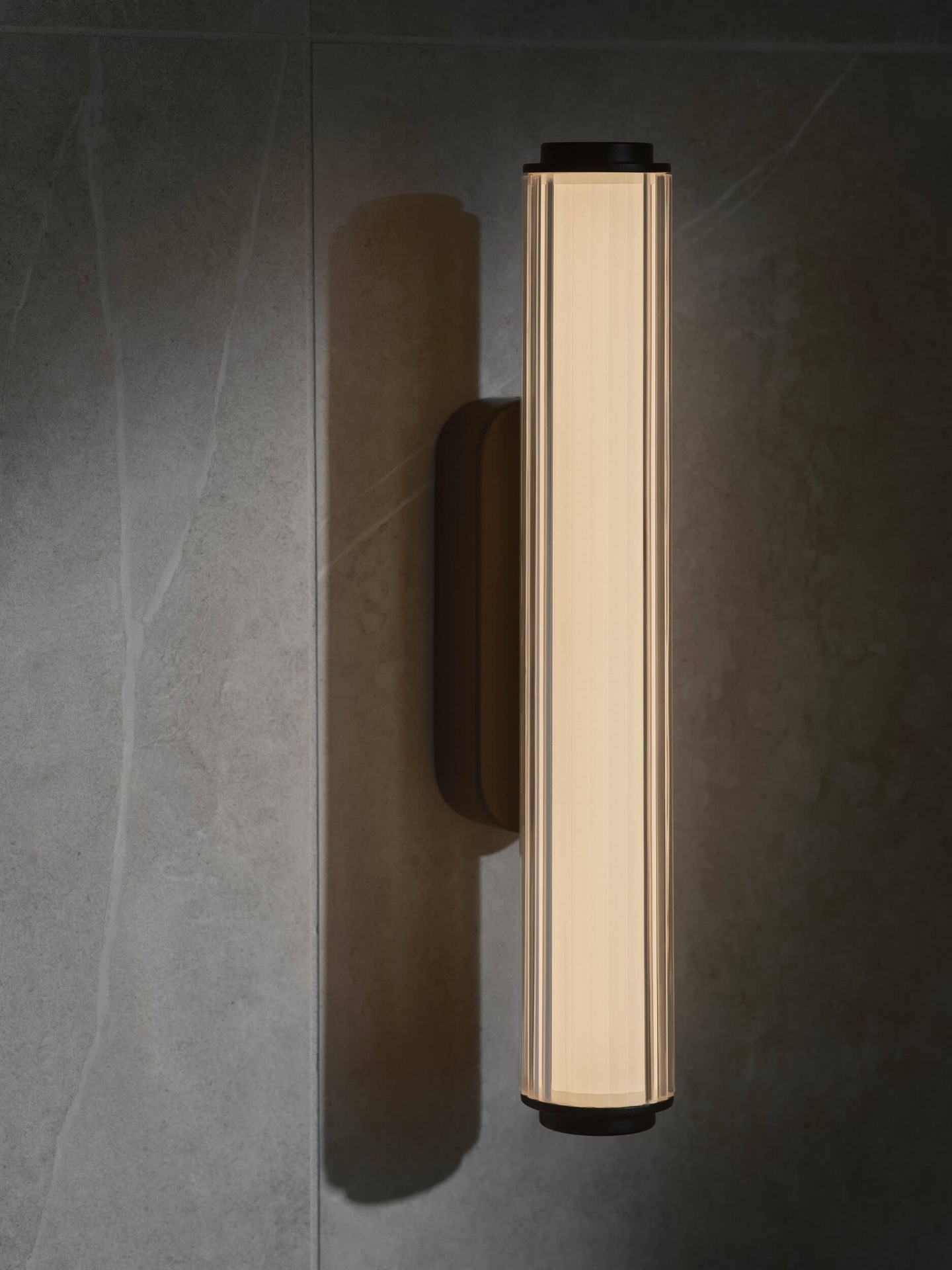 Væglampen Virelle 32 kombinerer tidløst design med funktionelt lys og er med sin IP44-klassificering velegnet til badeværelser og de fleste andre indendørs miljøer. Den dekorative lampe med integreret LED-lyskilde har en riflet skærm, som tilføjer en smuk tekstur i rummet. Farvetemperaturen på det klare og behagelige lys kan ved installation sættes til hvidt lys på 3000K eller til koldt hvidt lys på 4000K.
