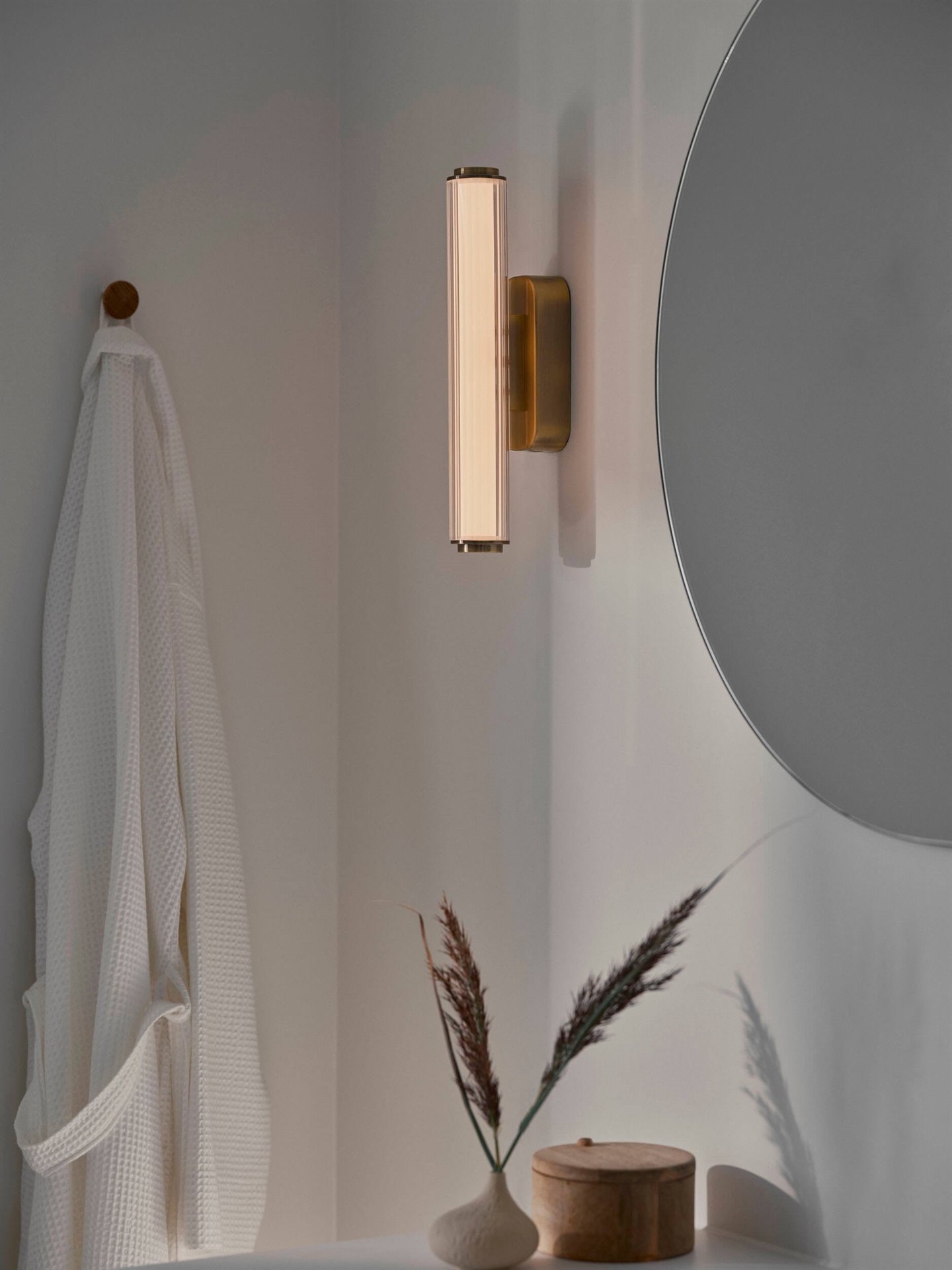 Væglampen Virelle 32 kombinerer tidløst design med funktionelt lys og er med sin IP44-klassificering velegnet til badeværelser og de fleste andre indendørs miljøer. Den dekorative lampe med integreret LED-lyskilde har en riflet skærm, som tilføjer en smuk tekstur i rummet. Farvetemperaturen på det klare og behagelige lys kan ved installation sættes til hvid lys på 3000K eller til koldt hvidt lys på 4000K.