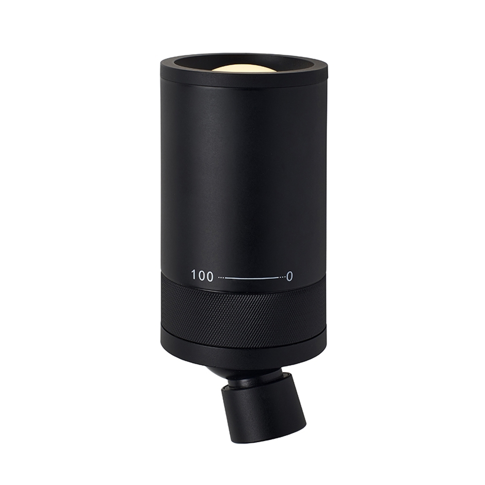 Roterende dæmper på lampen (0-100%) til den justerbare lyskilde (nederste)